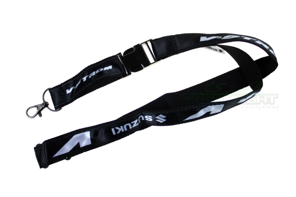 Oryginalna smycz Suzuki V-Strom Karabińczyk i mocowanie metalowe, mocowanie na szyi plastik. Numer katalogowy: 990F0-VSLA0-000 Nowa, fabrycznie zapakowana. Zdjęcia przedstawiają... czytaj więcejOpis