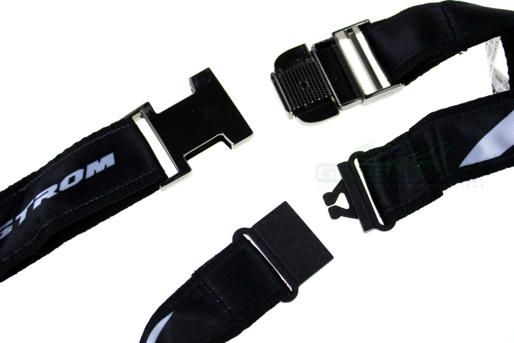 Karabińczyk i mocowanie metalowe, mocowanie na szyi plastik.